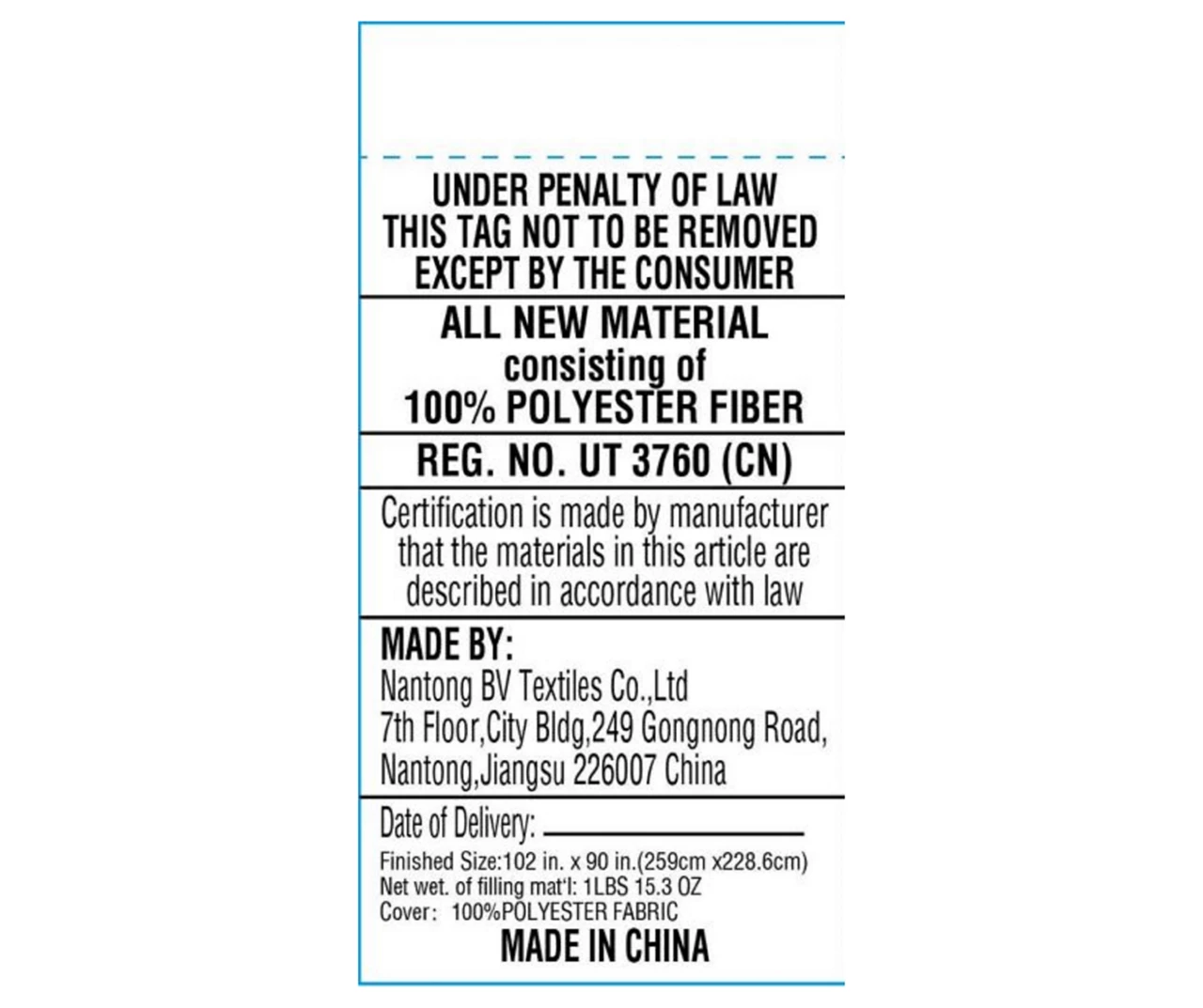 • Product dimensions: 102.0″L x 90.0″W x 1.0″H